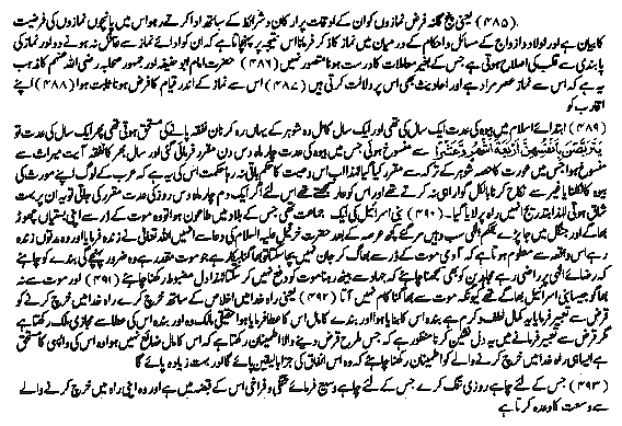 | پھر اگر خوف میں ہو تو پیادہ یا سوار جیسے بن پڑے پھر جب اطمینان سے ہو تو اللہ کی یاد کرو جیسا اس نے سکھایا جو تم نہ جانتے تھے | ۲۳۹ |