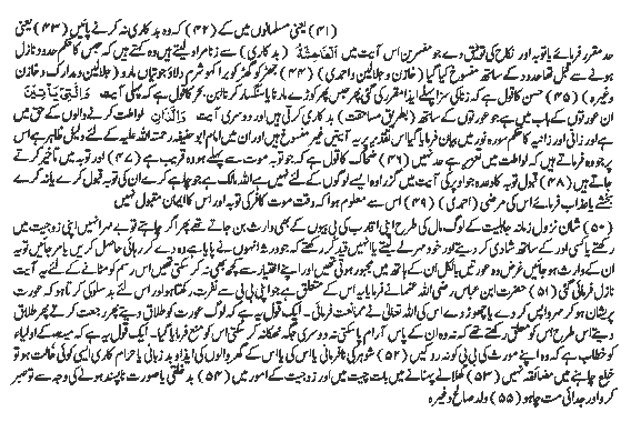 | اے ایمان والو! تمہیں حلال نہیں کہ عورتوں کے وارث بن جاؤ زبردستی اور عورتوں کو روکو نہیں اس نیت سے کہ جو مہر ان کو دیا تھا اس میں سے کچھ لے لو مگر اس صورت میں کہ صریح بے حیا ئی کا کام کریں اور ان سے اچھا برتاؤ کرو پھر اگر وہ تمہیں پسند نہ آئیں تو قریب ہے کہ کوئی چیز تمہیں ناپسند ہو اور اللہ اس میں بہت بھلائی رکھے | ۱۹ |