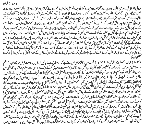 ان کے دلوں کی تو بات اللہ جانتا ہے تو تم ان سے چشم پوشی کرو اور انہیں سمجھا دو اور ان کے معاملہ میں ان سے رسا بات کہو | ۶۳ |